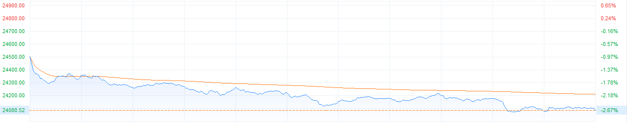 截止收盘,恒生指数跌2.67%,报收24080.52,创逾一个半月新低;恒生科技指数跌3.25%,报收6151.99;国企指数跌2.65%,报收8576.07;红筹指数跌1.77%,报收3812.69。