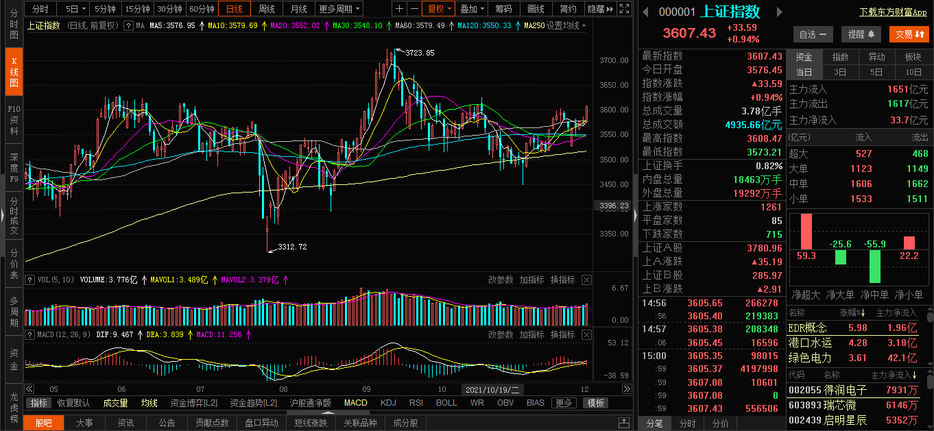 指数方面,沪市回到3600点上方,以中字头基建为代表的权重股表现不错。创业板及科创板标的情绪回落,今日仅雅创电子、爱司凯涨停,但是有11只跌超10%。