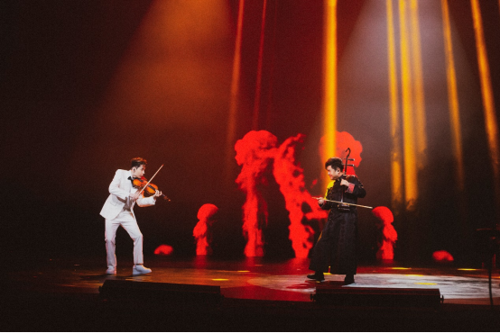 青龙篇章试图表达声音的多元碰撞与互相融合。从乐器演奏到诗歌朗诵,再到大交响乐团的合奏,多种类型的声音形式让观众在本篇章中听到过瘾。歌手、演员、主持人HENRY刘宪华用小提琴与二胡演员陈军联合带来了中西《乐器碰撞》, 两位所带领的两支队伍在这个篇章里完成了碰撞到融合的过程。