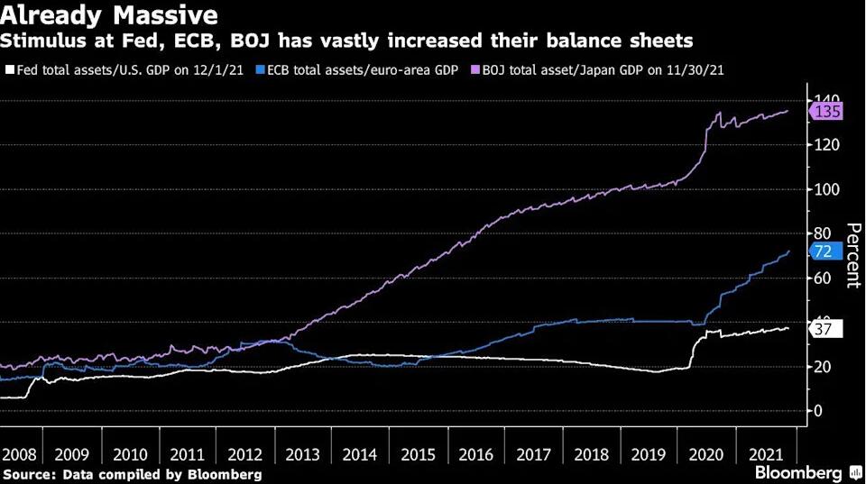 美银全球研究策略师预计,全球流动性将在2022年第一季度达到峰值,美联储、欧洲央行和英国央行将在明年年底前将其资产负债表规模从年初的逾20万亿美元缩减至18万亿美元。