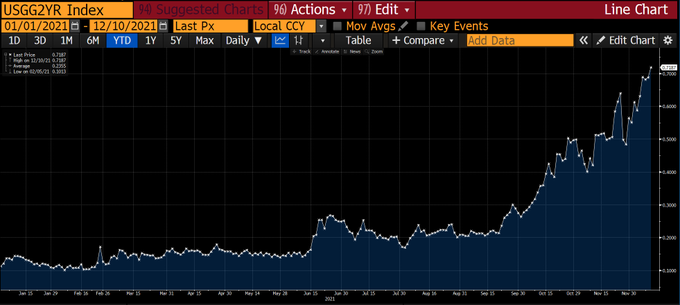 利率期货的交易现在正押注美联储明年将有大约三次25个基点的加息,经济学家的预测也与这种前景越来越一致——摩根大通上周五将其预测调整为2022年加息三次。