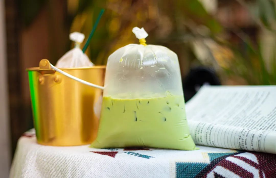 今年夏天,各个城市街头都开始出现一种“袋装饮品”:塑料袋加冰加饮品,用小皮筋扎口,最后放入一个纸袋里,形式特别、颜值出圈。