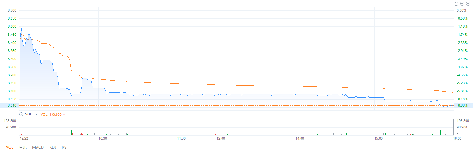 周三(12月22日)开盘后,滔搏不出意外地低开低走,报收8.0港元,跌6.86%。