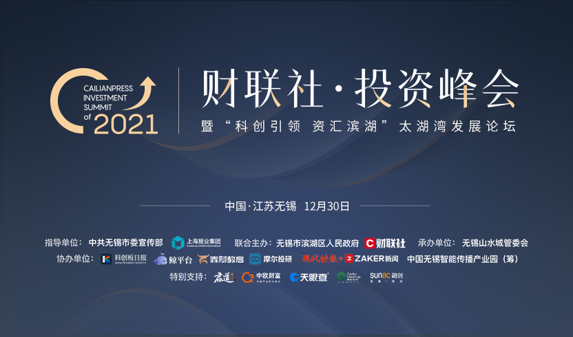 由中共无锡市委宣传部、上海报业集团指导,无锡市滨湖区人民政府、财联社联合主办,科创板日报、鲸平台、犇财教育、摩尔投研、现代快报+·ZAKER新闻、中国无锡智能传播产业园(筹)共同协办的2021财联社·投资峰会暨“科创引领 资汇滨湖”太湖湾发展论坛将于12月30日在无锡开幕。本次峰会特别鸣谢中欧财富、天眼查、雪松控股、融创以及君道贵酿对活动支持。