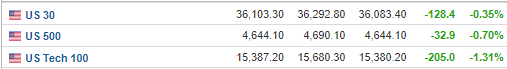 上周五,标普500指数收跌0.41%,报4677.03点;纳斯达克指数收跌0.96%,报14935.90点;道琼斯指数收跌0.01%,报36231.66点。