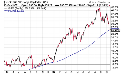 最近也是最令人眼下记忆犹新的,无疑是2020年3月美股因疫情而遭遇的史上最快熊市。然而,1987年的经历或许要更为触目惊心,当年10月标普500指数在跌破200日均线后不久,便引发了震惊全世界的“黑色星期五”。