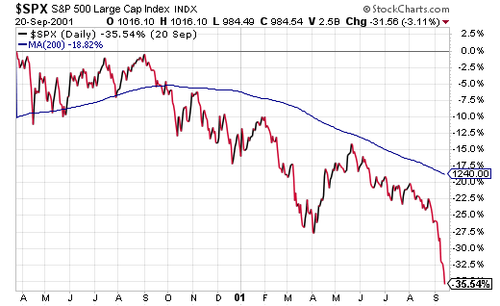 这导致了标普500指数在2001年的急剧崩盘——直到2003年才触底。