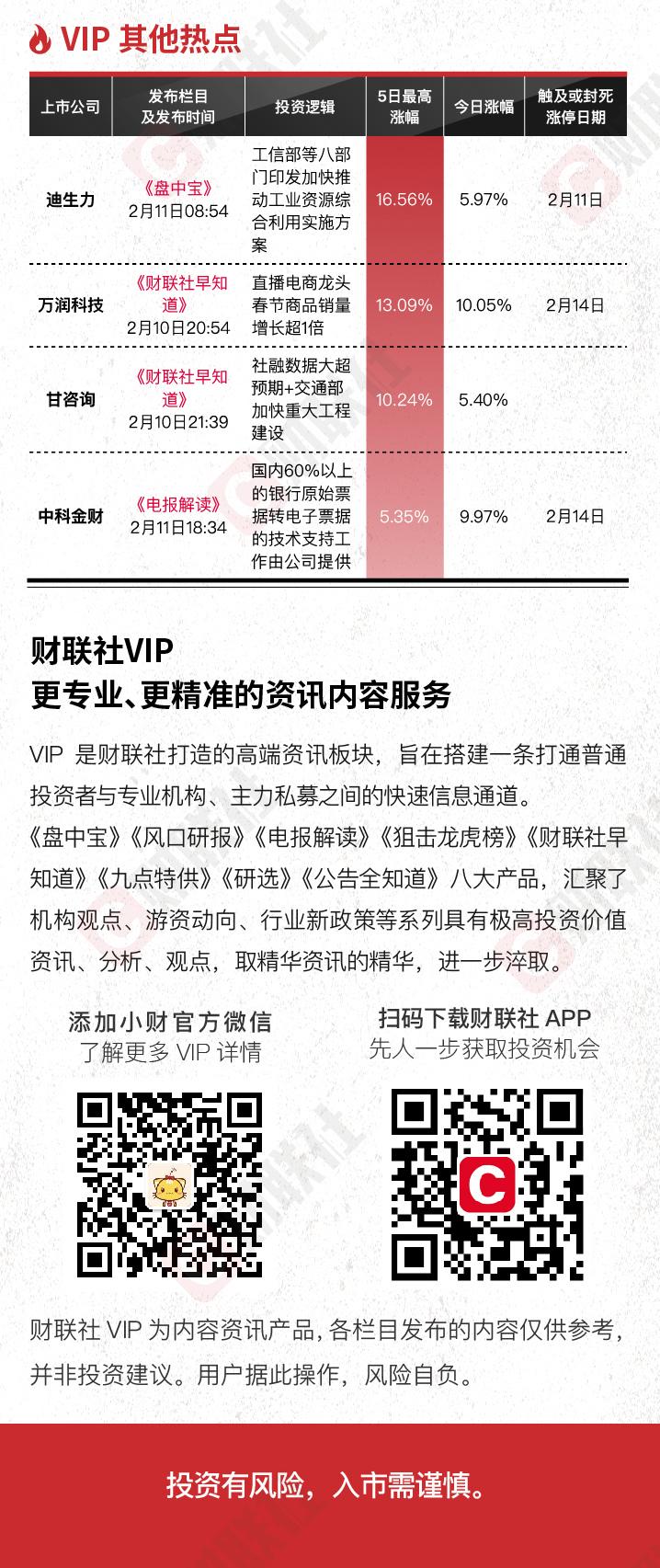 注:财联社VIP为内容资讯产品,并非投资建议。以下内容仅为资讯价值展示非对相关公司的推荐建议,非未来走势预测。投资有风险,入市需谨慎。
