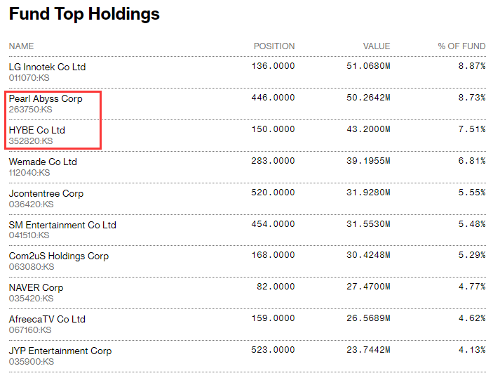 因此,韩国金融公司推出的元宇宙ETF不仅涵盖了科技公司和芯片制造商,还包含了许多与韩国娱乐业相关的股票。比如三星推出的“Samsung KODEX K-Metaverse Active ETF”就包含了Pearl Abyss Corp和HYBE Co Ltd。