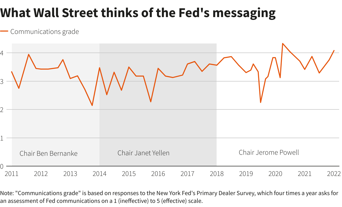 纽约联储对初级交易商进行的调查,评估了美联储与市场和公众间的沟通情况,打分从1分的“无效”直至5分的“有效”。