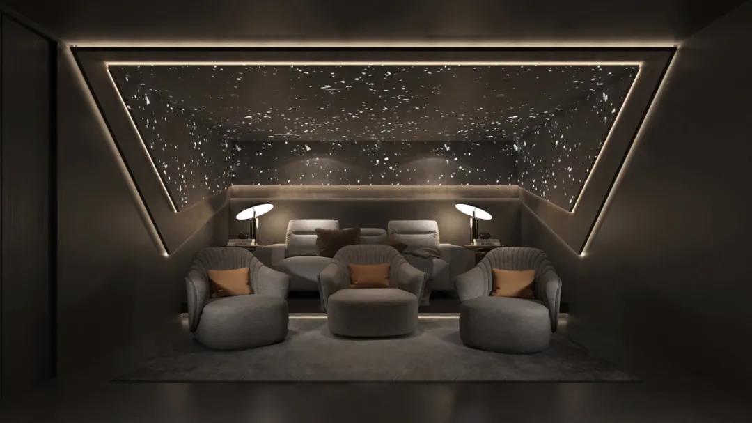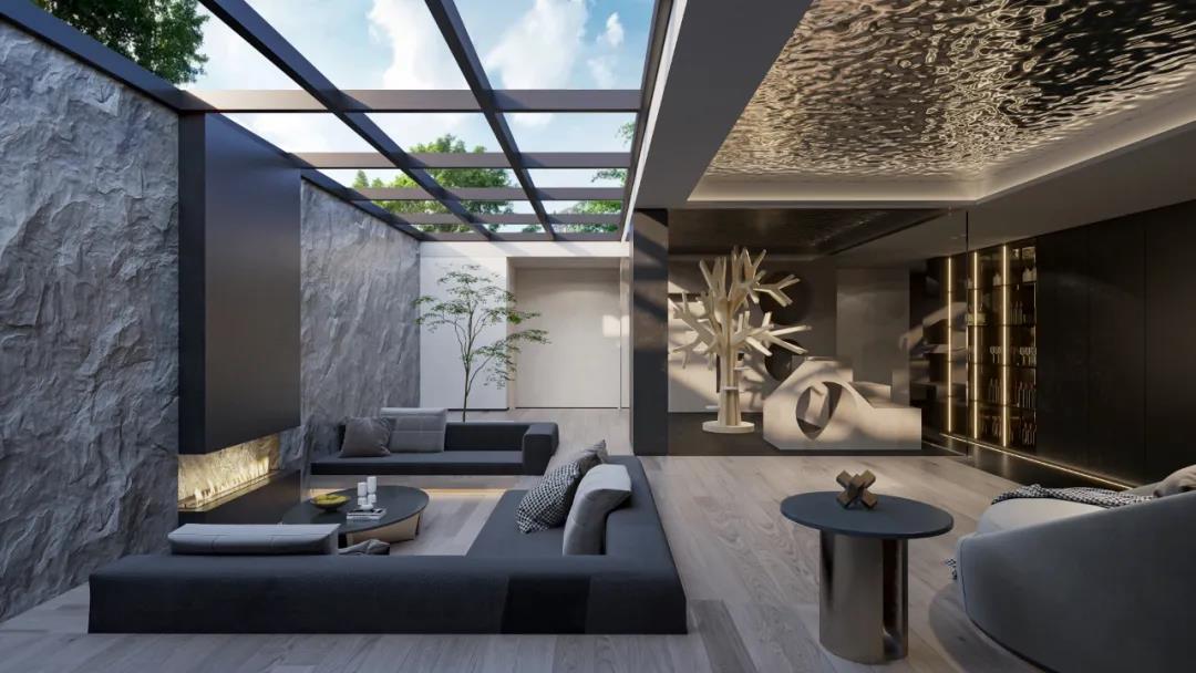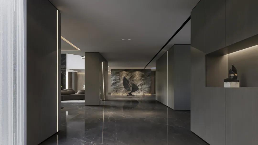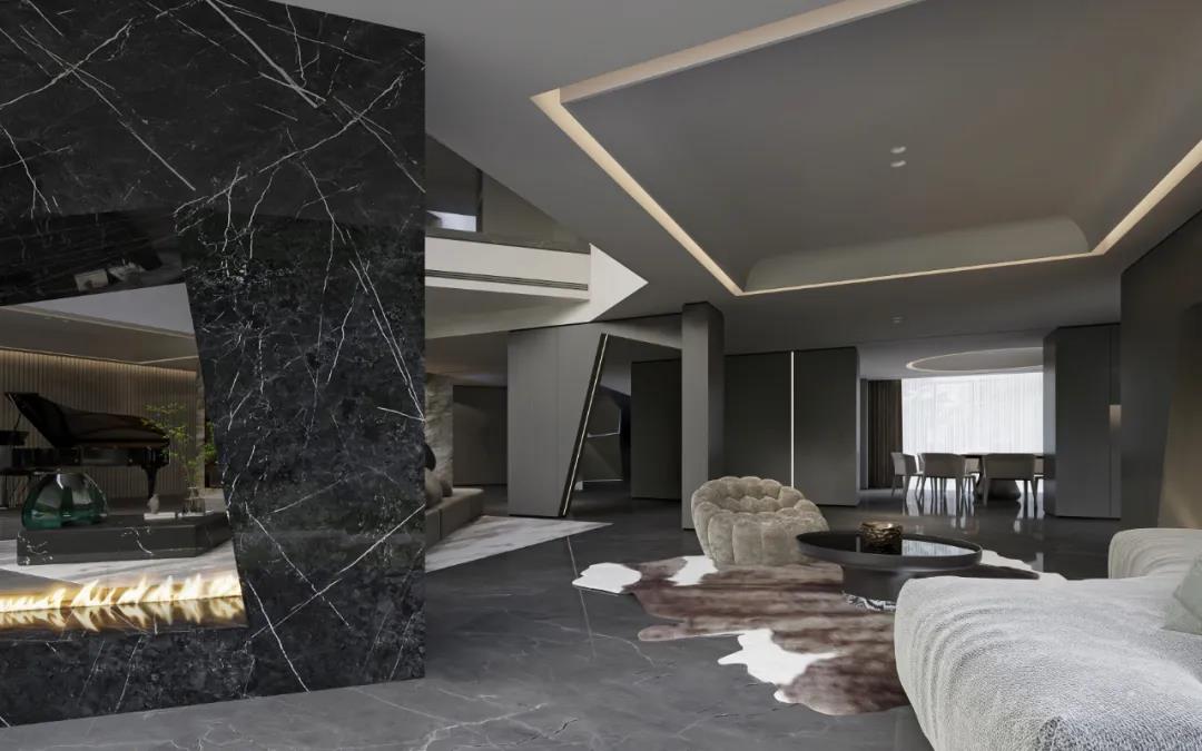 个性直接、阳刚爽朗的客户,他会设计全直线的空间。直线多变的组合切割出了富有张力的空间,大气开阔、干净洗练,像铮铮有力的弦乐拨弄时空。