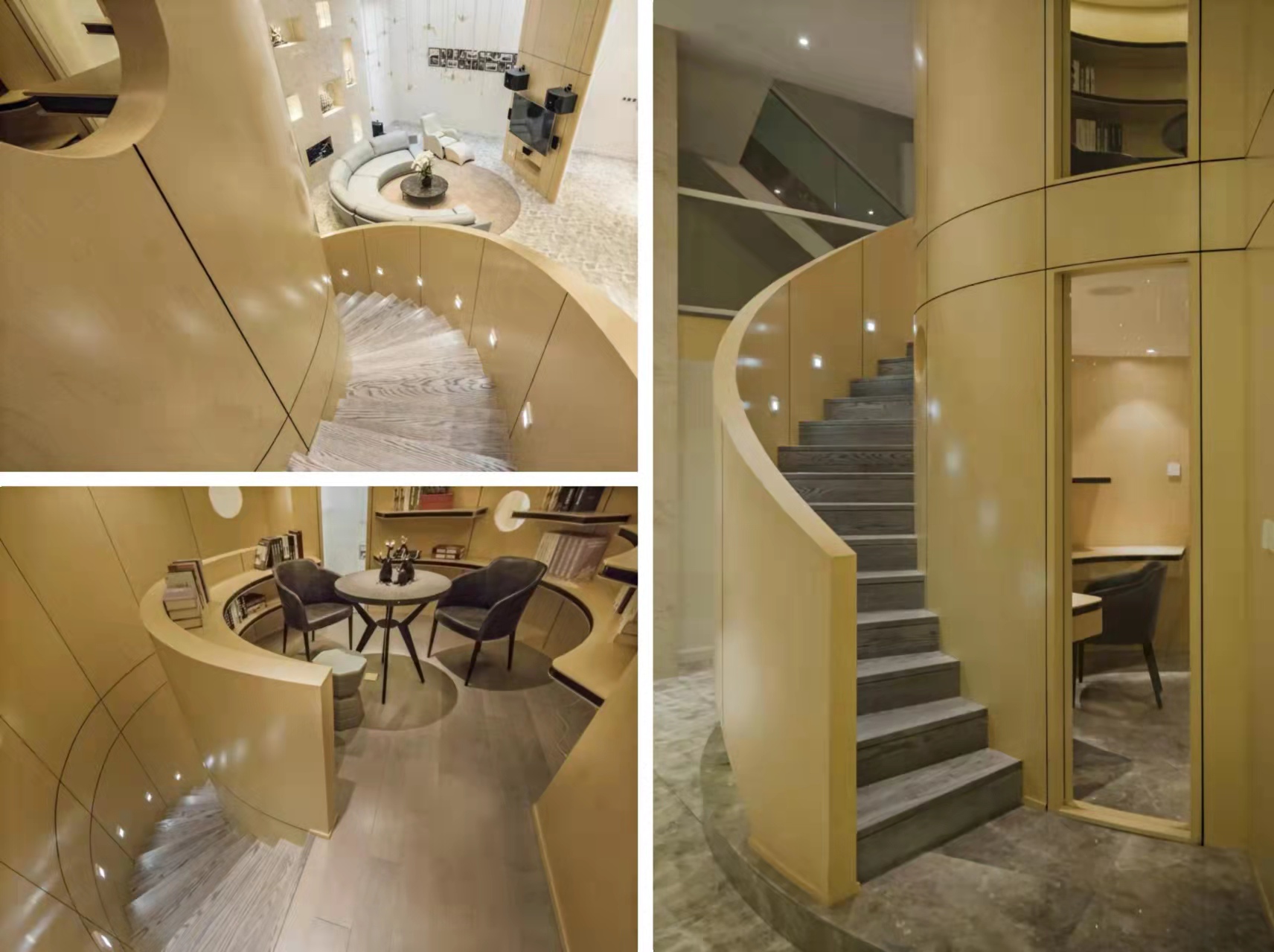 “年轮”项目是他给客户的孩子设计的一个儿童空间。该建筑原本是一个地下室,空间结构很不合理。他干脆因地制宜,开创性地设计了一个桶形建筑,像树干一样温润、敦厚。“内部是专门给小孩走的楼梯,外部是给大人走的楼梯,就像孩子在大人的呵护下不断成长,拾级而上,所以命名为‘年轮’。”