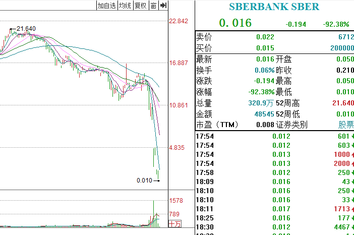 财联社3月2日电,俄罗斯联邦储蓄银行Sberbank在伦敦跌幅超90%,为史上最大单日跌幅。