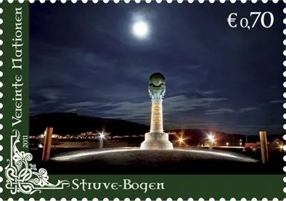 2011年5月5日,联合国邮局发行全套6枚的《北欧世界遗产》邮票,其中一枚0.70欧元票表现建立在弧线最北端、挪威哈默菲斯特的大地测量弧纪念碑