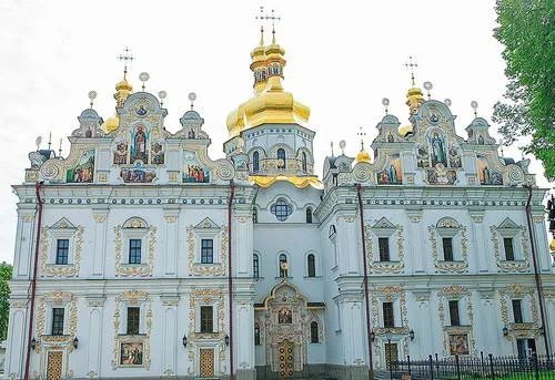 基辅洞窟修道院始建于1051年,是基辅市内最古老的寺院建筑,也是包括乌克兰和俄罗斯在内的古代罗斯的重要宗教圣地和学术中心,因拥有深达数千米的人工洞窟而得名,洞窟曾用作防御工事,内建有教堂、墓地和经房。洞穴里的遗体已埋葬了7个世纪之久。修道院建筑群以高达97米的金顶钟楼为中心,为欧洲教堂钟楼之最。1990年,圣索菲亚大教堂和洞窟修道院一起被联合国教科文组织列入《世界文化遗产名录》。