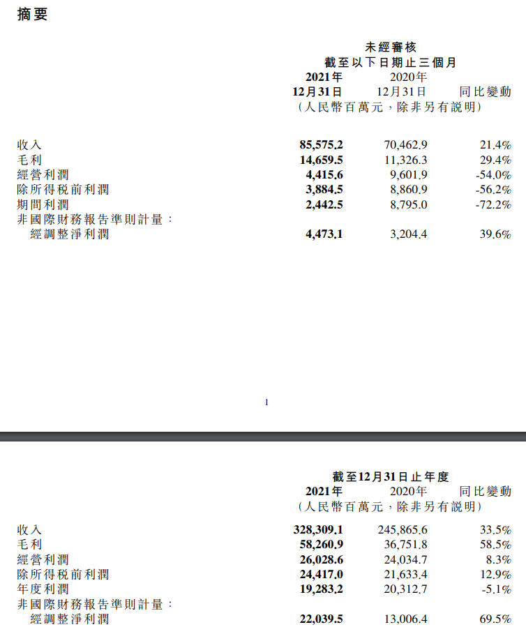 财联社3月22日讯,小米集团今日发布了2021年度第四季度及全年的业绩公告。