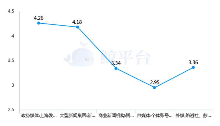 问卷显示,如果可信度满分5分,像上海发布、深圳卫健委这样的政务媒体平均得分4.26,可信度最高,其次是大型新闻集团;而自媒体得分最低,可信度仅2.95分。