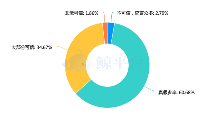 在对新闻的可信度调查中,61%的00后群体认为浏览的新闻“真假参半”,认为“非常可信”的比例只有1.86%。