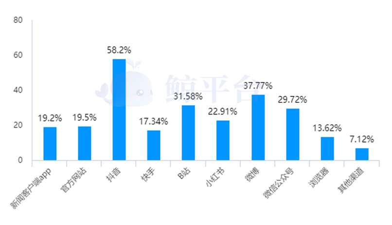 虽然很多人都喜欢刷微博热搜,但是问卷调查结果显示,58%的00后选择通过抖音来看新闻,其次是微博和B站,分别占38%和32%,和抖音还是有一定差距。